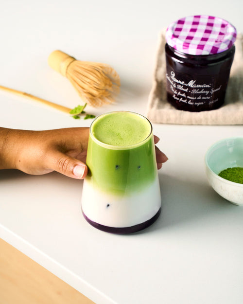 Matcha latté glacé à la Tartinade de Bleuet Bonne Maman