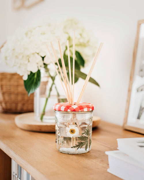 Fill your diffuser with a room fragrance, close the lid and add the wooden sticks.